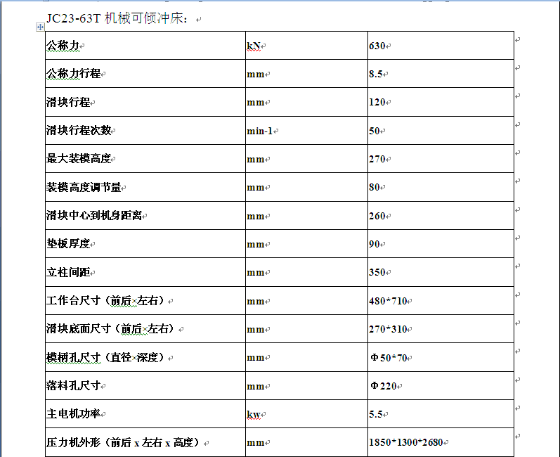 JC23-63T可傾沖床壓力機技術參數